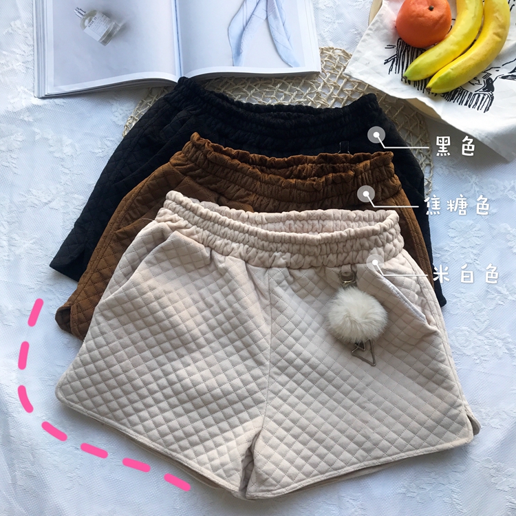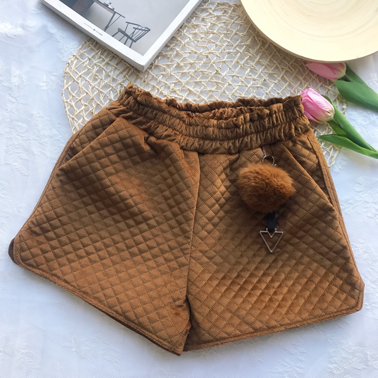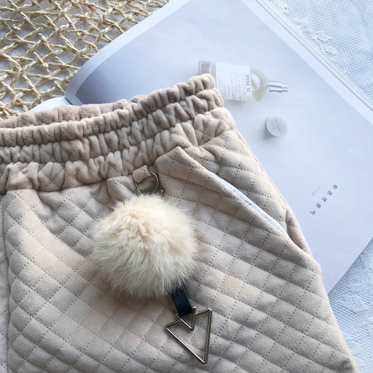 / 秋冬季新款韓版保暖時尚百搭復古女夾棉高腰百搭A字闊腿褲帶毛球
