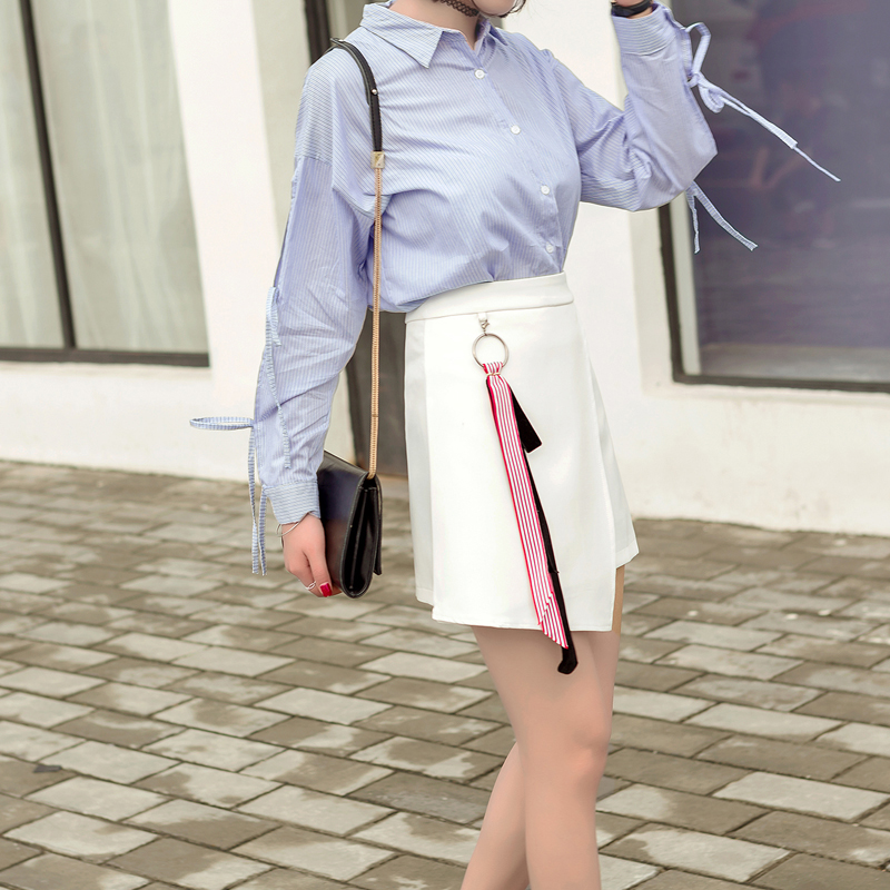 不規則半身裙女春夏裝新款韓版環扣綁帶高腰A字裙短裙包臀裙