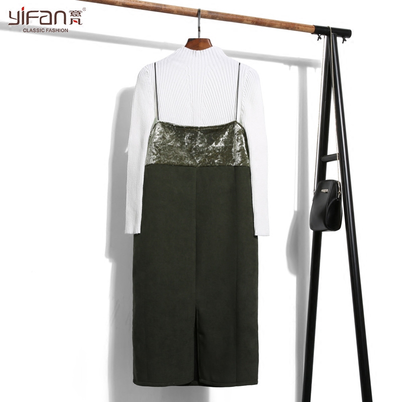 / 韓版裙吊帶V領連衣裙女裝春秋裝新款背帶裙修身顯瘦打底裙新