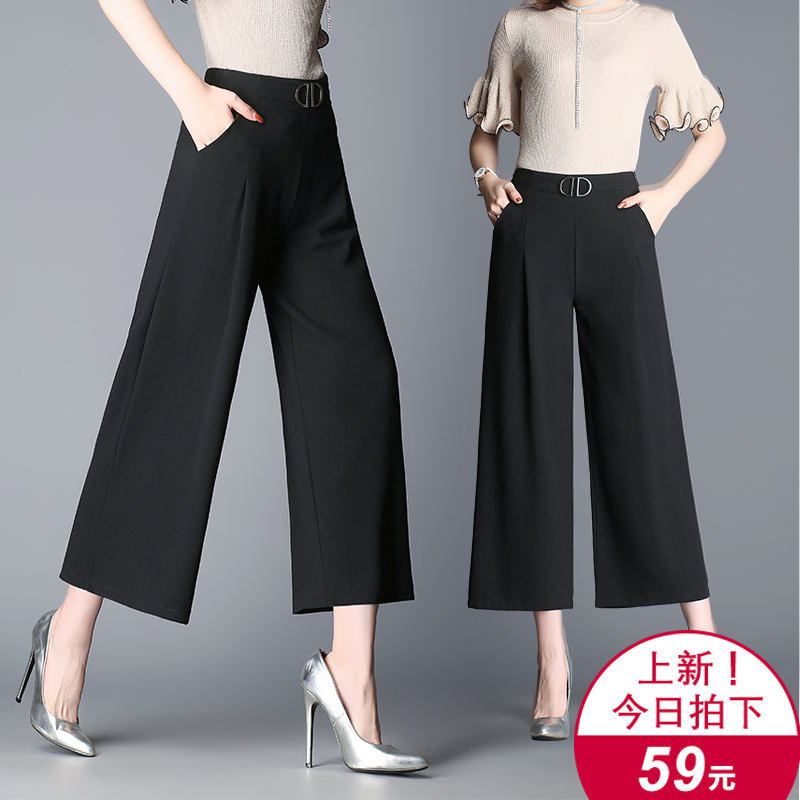 / 雪紡闊腿褲女夏九分直筒褲新款高腰寬松顯瘦休閑褲子百搭西褲