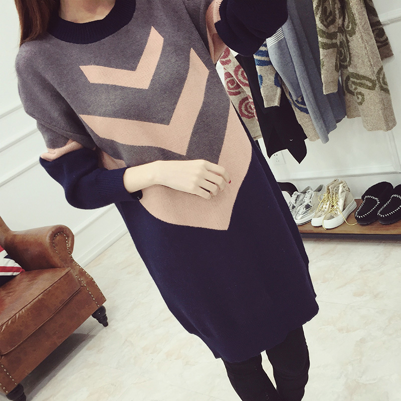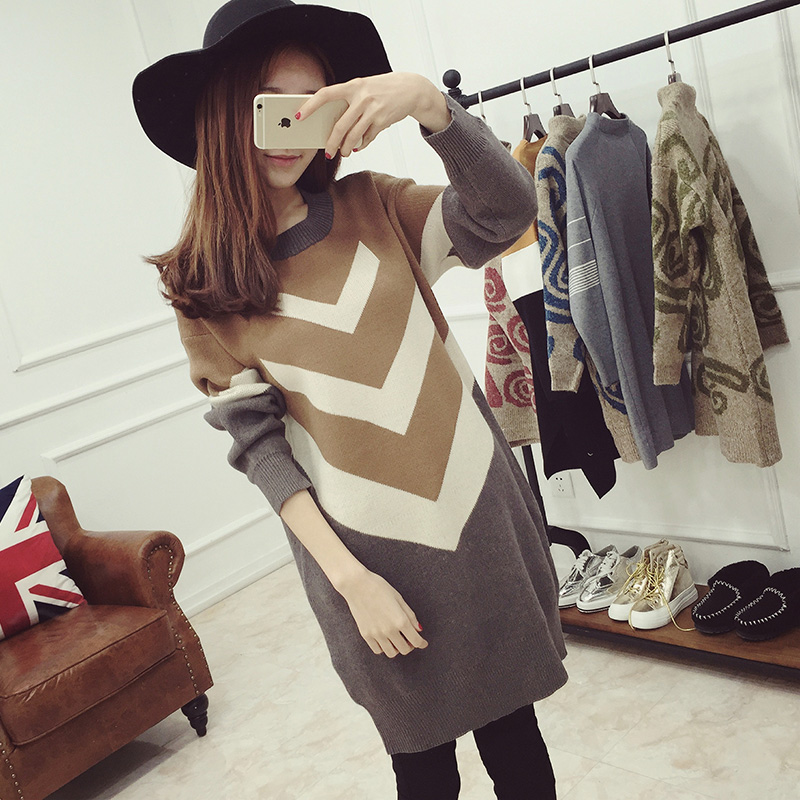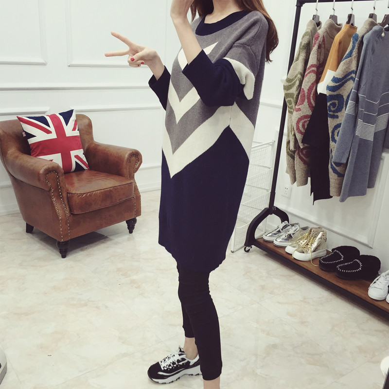 / 女裝秋裝新款潮套頭毛衣裙女秋冬中長款學生上衣針織衫打底衫