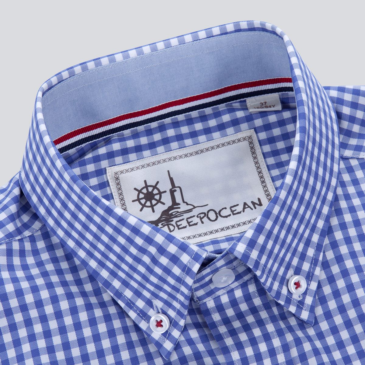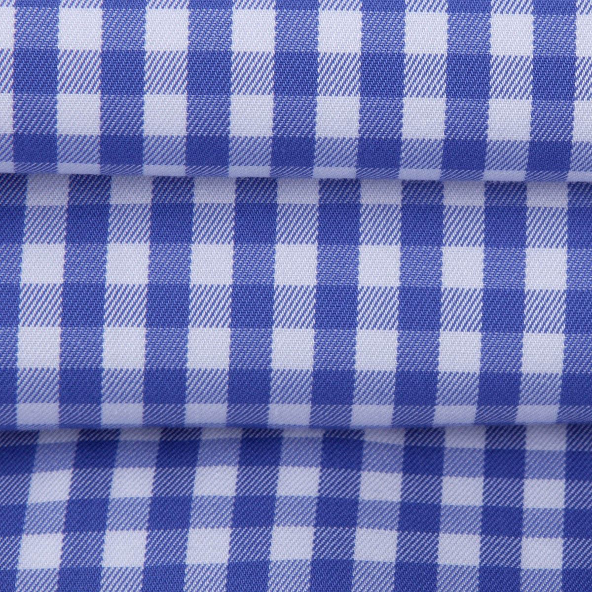 秋季藍白小格子男士長袖襯衫高支棉修身免燙韓版正裝釘扣領男襯衣
