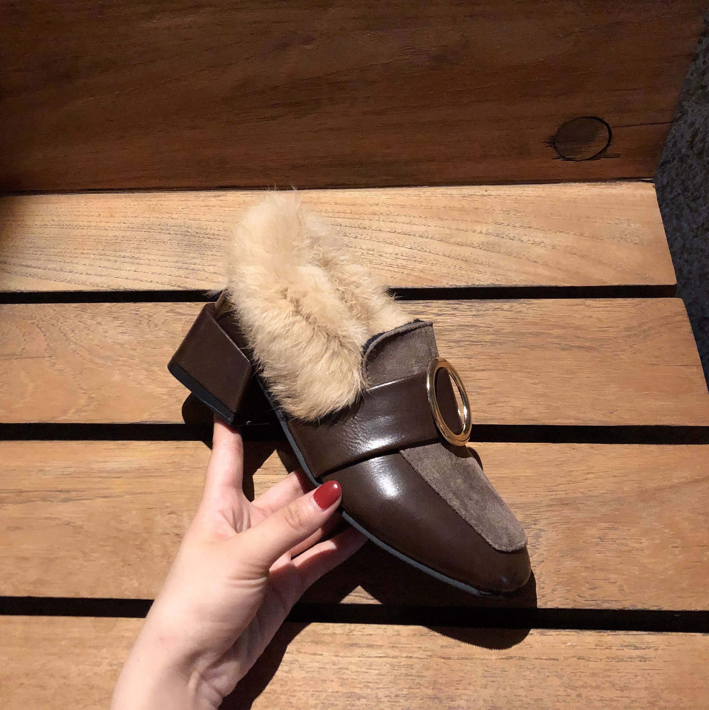 / 秋冬季新款時尚氣質韓版粗跟毛毛鞋加絨保暖兔毛拖鞋百搭包頭鞋女