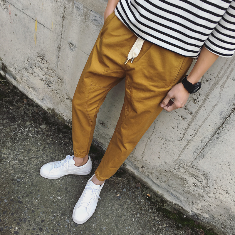 / 初春日系新款拼接韓版潮大抽繩小腳男士休閑褲