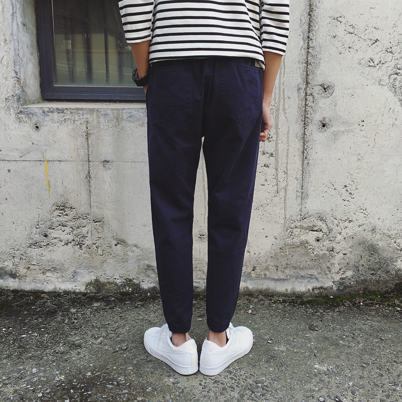 初春日系新款拼接韓版潮大抽繩小腳男士休閑褲