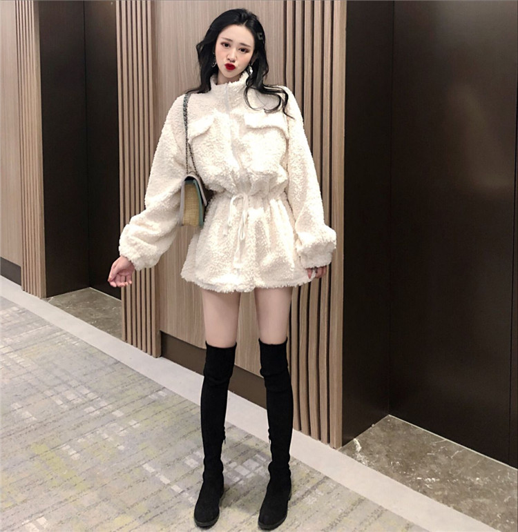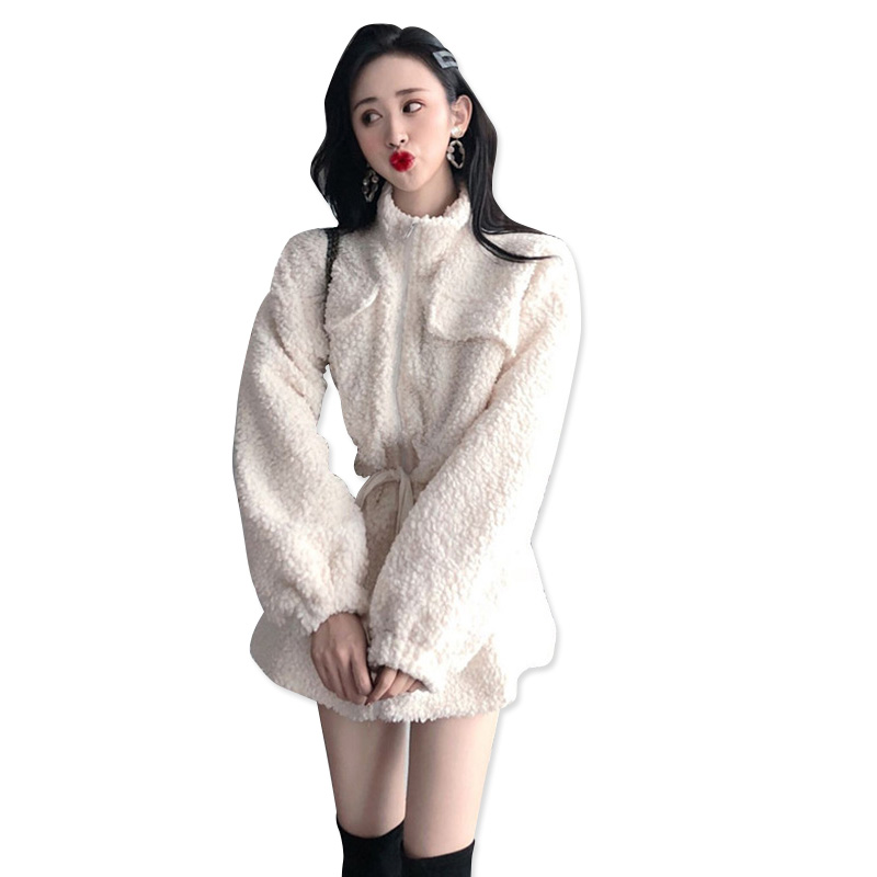 2018冬季新款復古百搭加厚時尚氣質女人味收腰拉鏈寬松毛毛外套潮