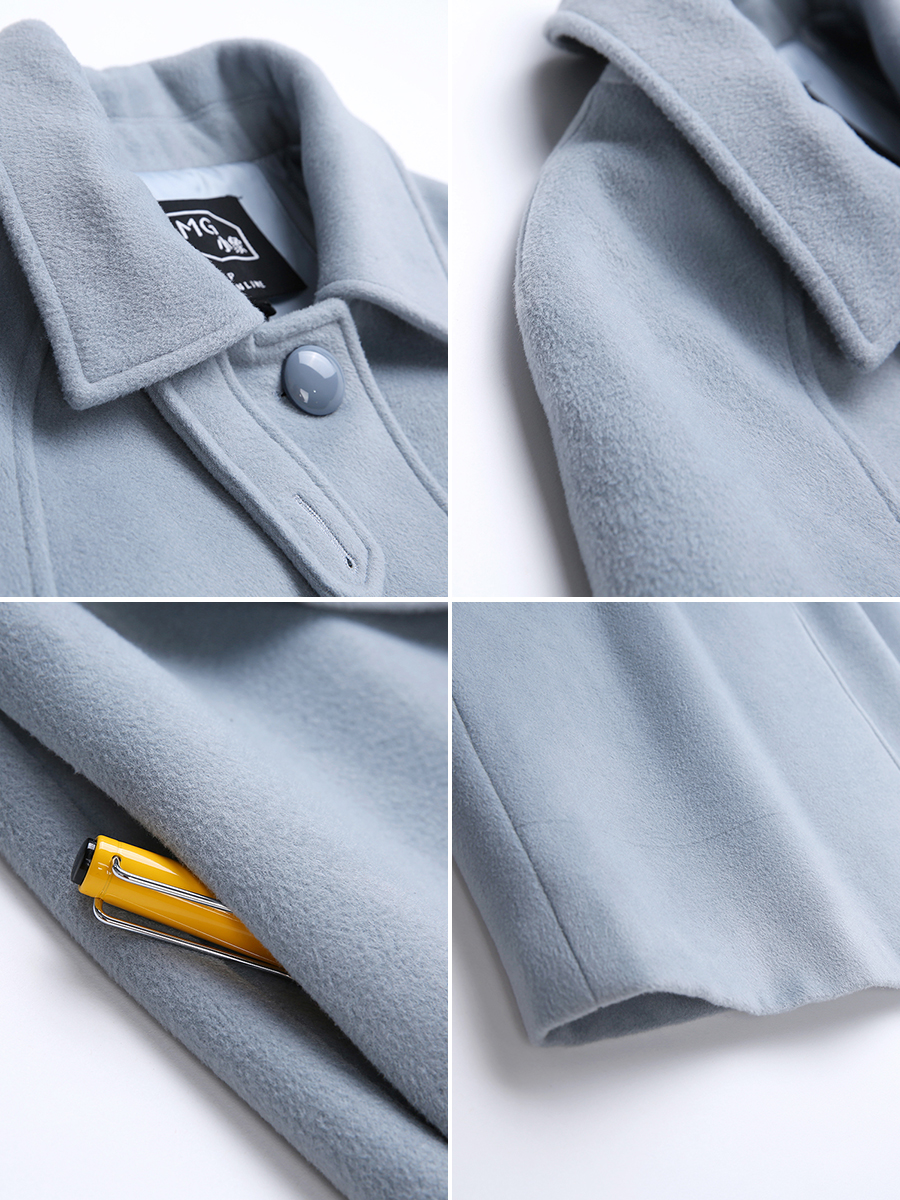 MG小象單排扣呢子大衣女中長款寬松韓版2018新款時尚秋冬毛呢外套