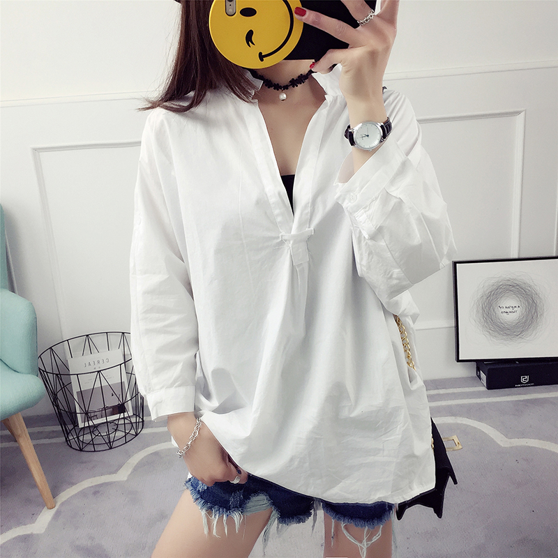白色襯衫女寬松韓版時尚百搭學生襯衣女裝新款春裝春季打底衫