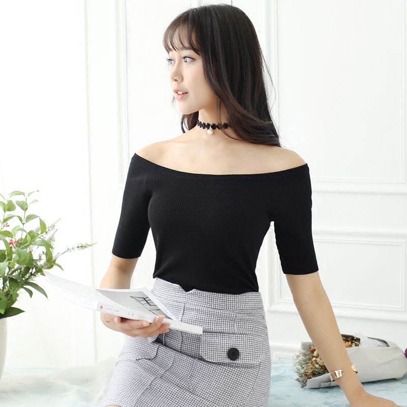 白色針織t恤女短款中袖圓領春夏薄款針織衫上衣女薄針織打底衫女