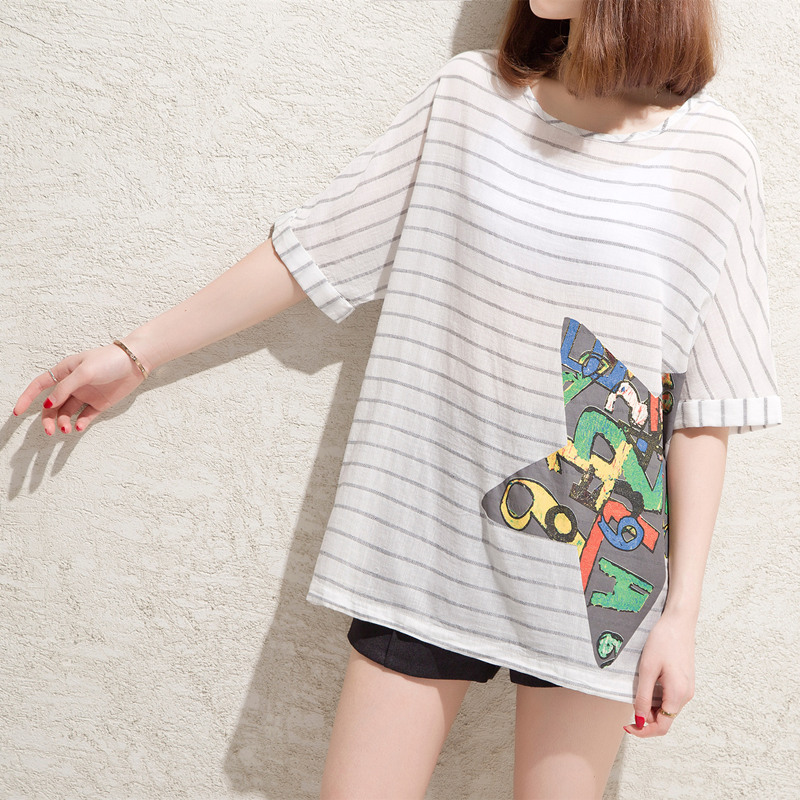 / 條紋白色t恤女短袖小清新心機上衣服女夏韓版體恤衫夏裝新款