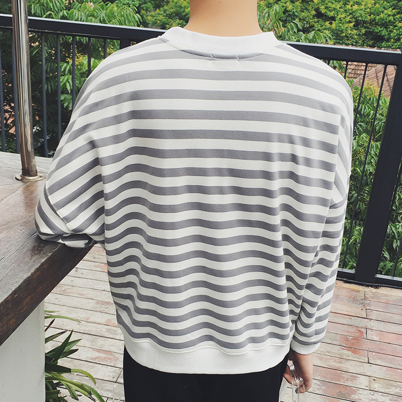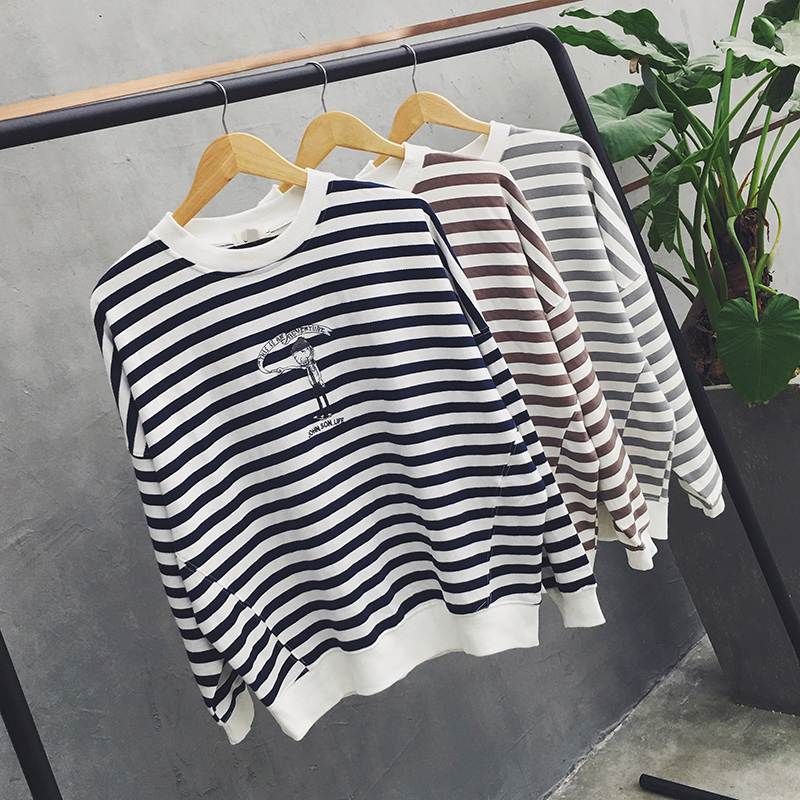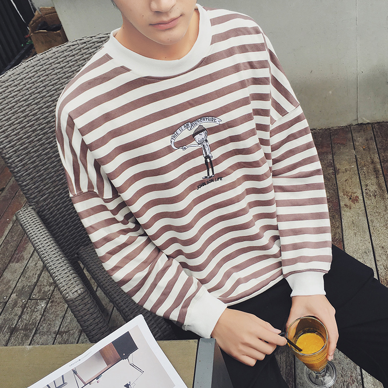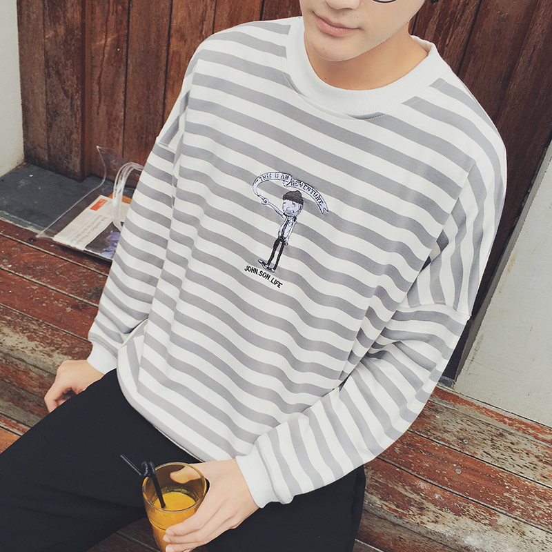 / 原創韓版卡通刺繡衛衣青少年條紋男士圓領衛衣