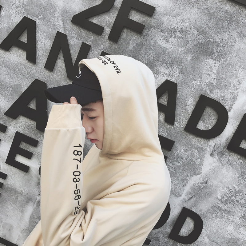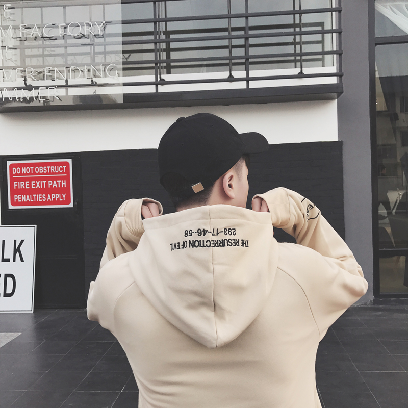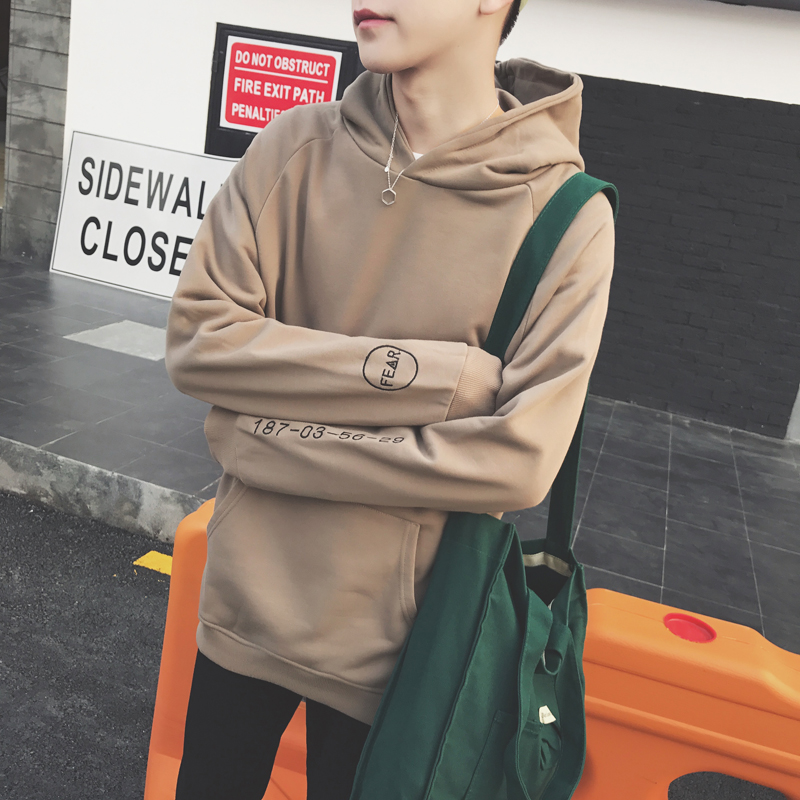 男裝字母刺繡韓版連帽寬松運動衫男士開叉套頭衛衣
