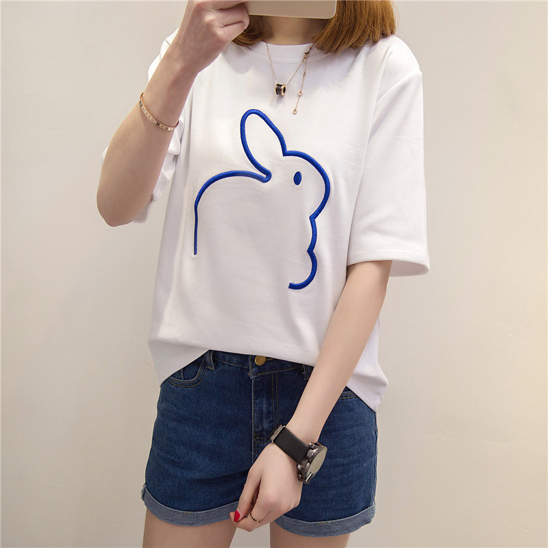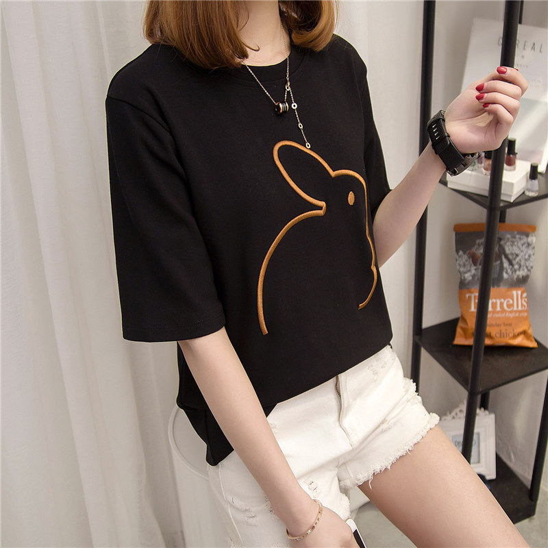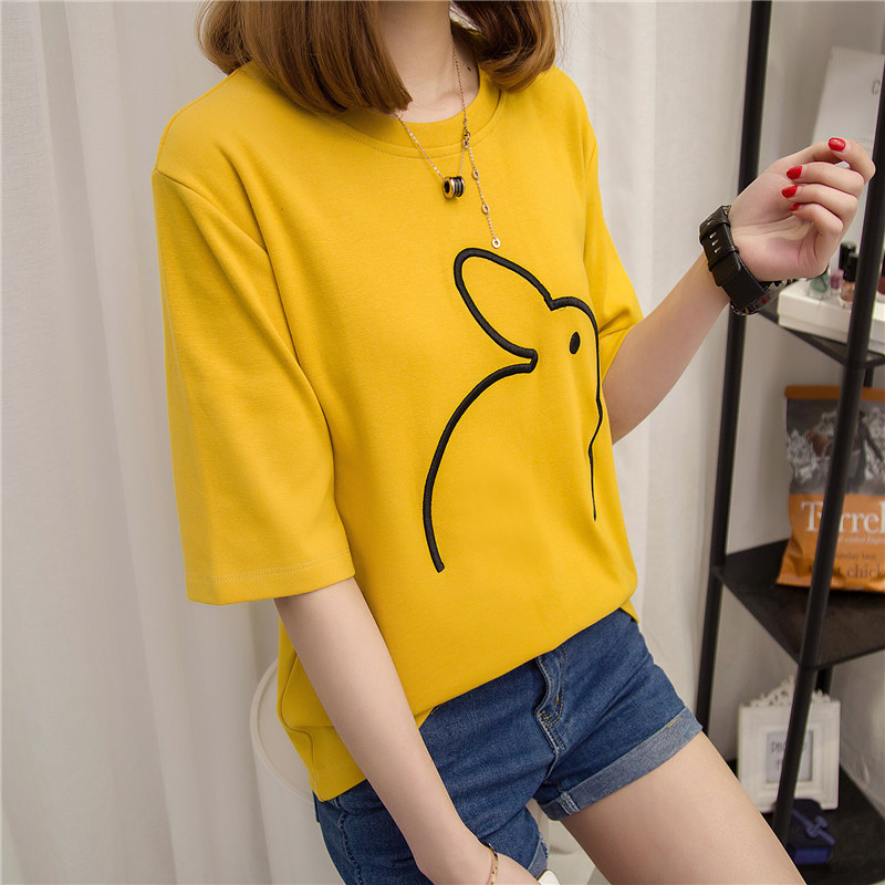 夏裝新款潮女裝上衣短袖t恤女寬松套頭韓版體恤衫女學生百搭