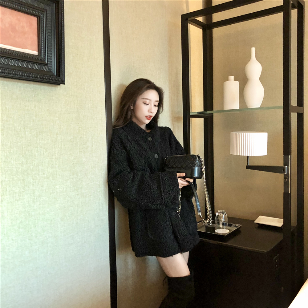 / 寬松加絨保暖時尚新款韓版百搭復古口袋系帶顯瘦翻領中長款外套女