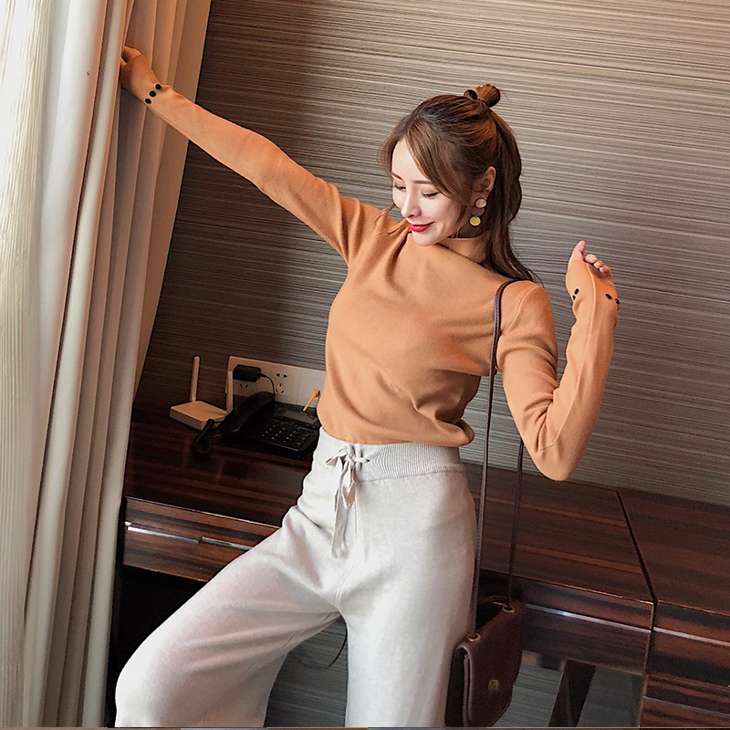/ 2018新款韓版百搭冬季長袖修身顯瘦T恤高領chic時尚打底針織衫女