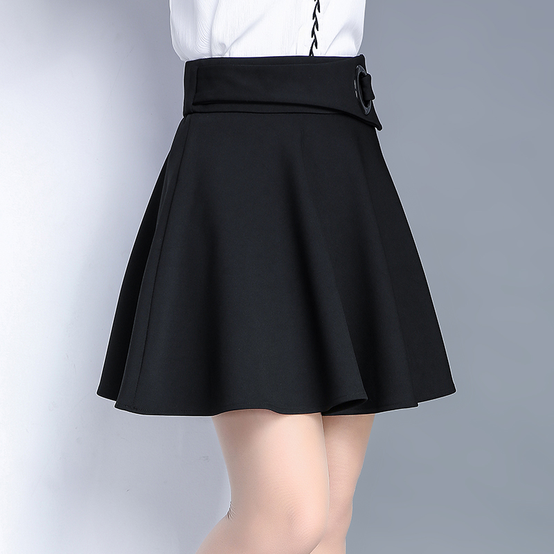 / 短裙女半身裙春季新品高腰修身顯瘦百搭百褶裙黑色蓬蓬A字裙