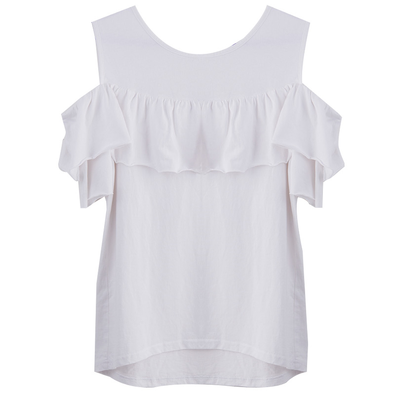 簡潔的圓領在露肩細節的加持下呈現出不一樣的嬌媚氣息