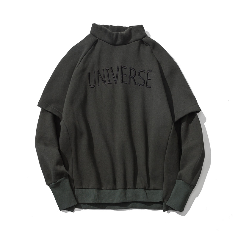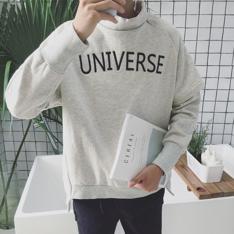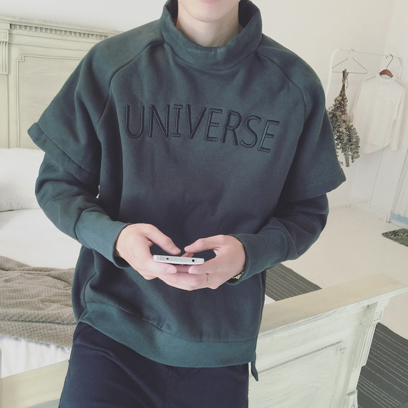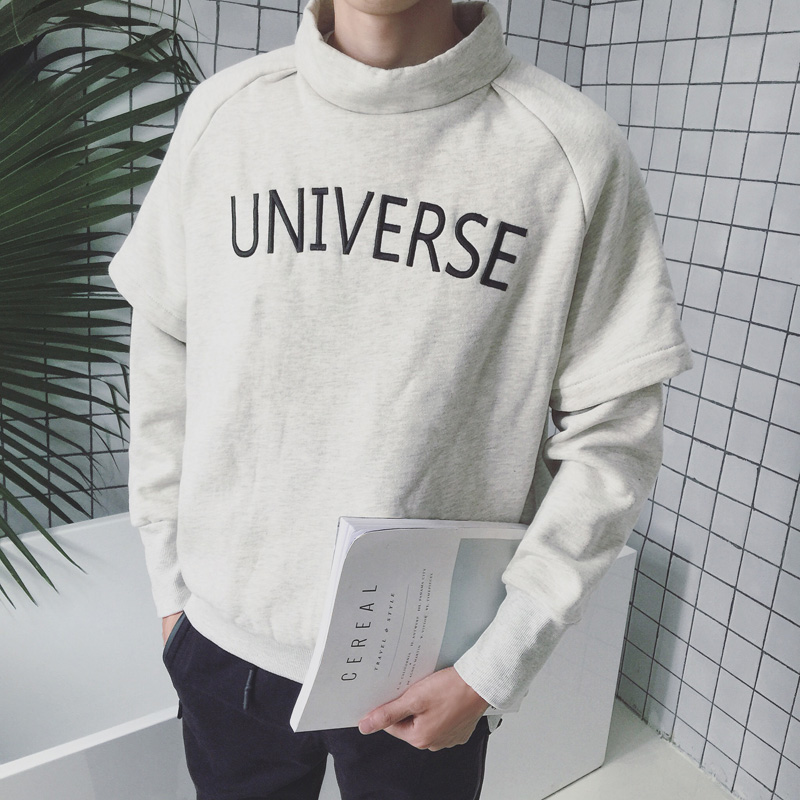 / 秋冬新款韓版半高領字母加厚假兩件男士套頭衛衣潮