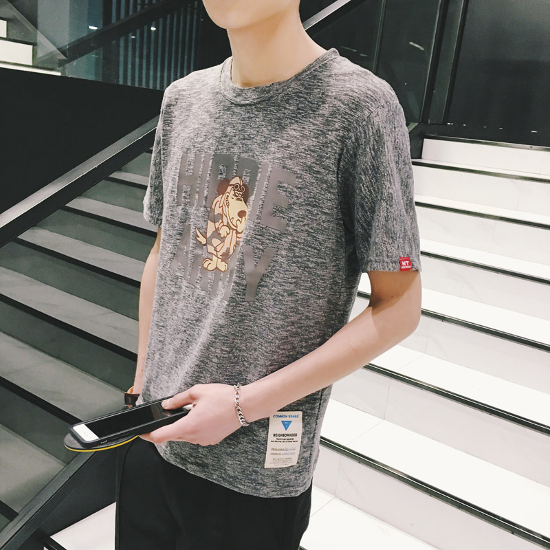 原創新品小狗字母印花潮男寬松短袖T恤韓版港風半袖
