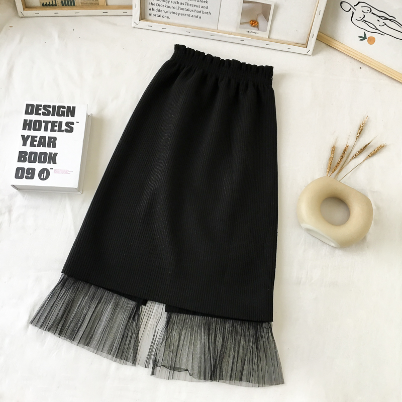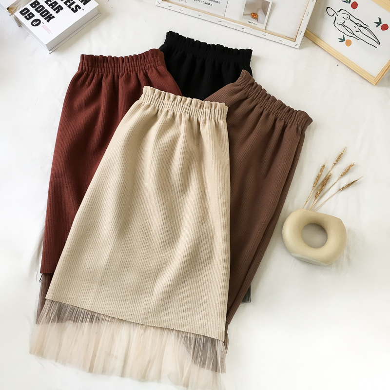 / 裙子女2018秋冬季新款chic基礎色百搭高腰毛呢網紗拼接A字半身裙
