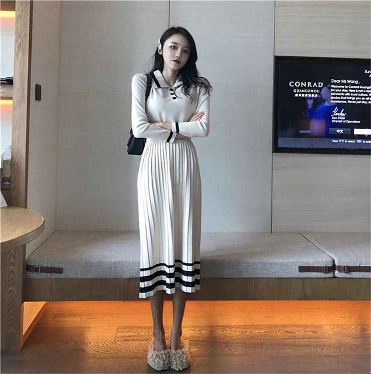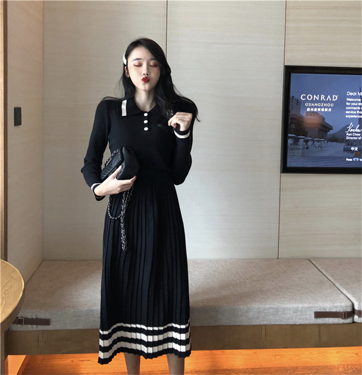 / 韓版修身顯瘦長袖針織上衣針織半身裙女秋季時尚套裝chic兩件套潮