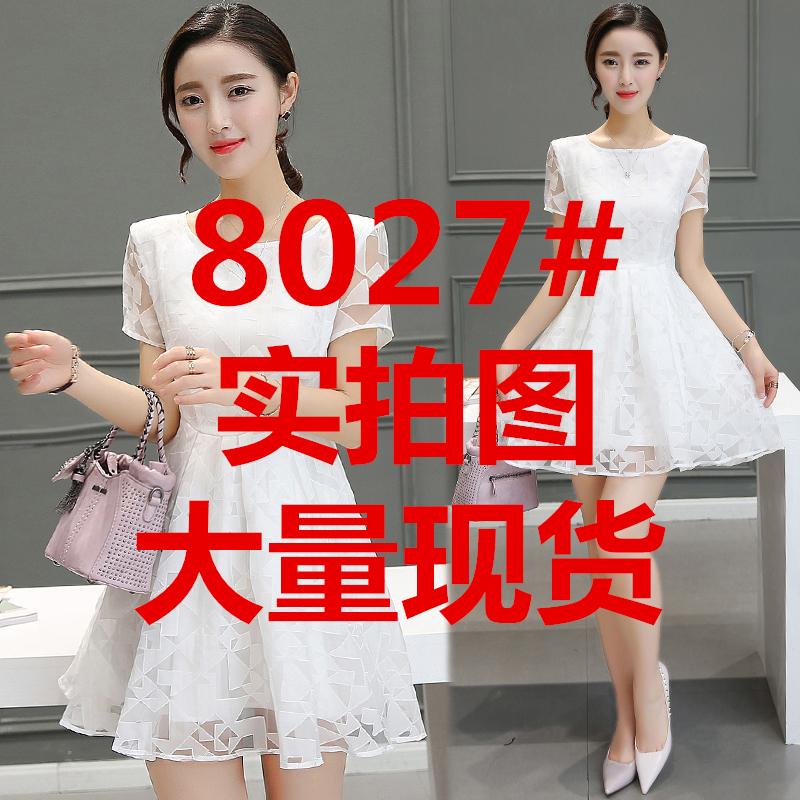 夏裝新款連衣裙修身韓版歐根紗短袖高腰裙子a字裙蓬蓬裙女裝