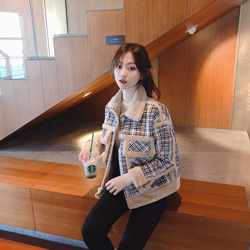 外套女2018冬新款百搭寬松保暖時尚加絨工裝加厚夾克皮毛一體外套
