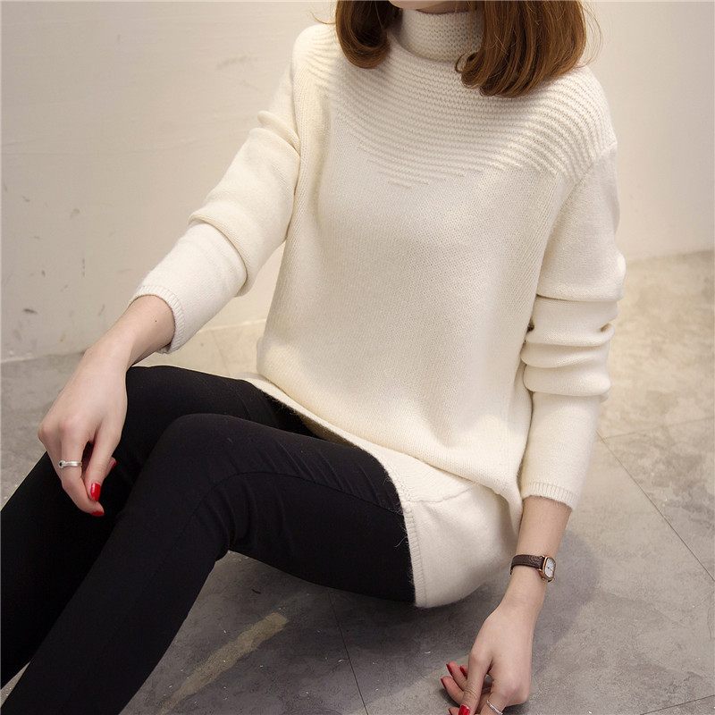 中長款打底衫長袖韓版高領毛衣裙上衣針織衫女套頭秋冬女裝新款潮