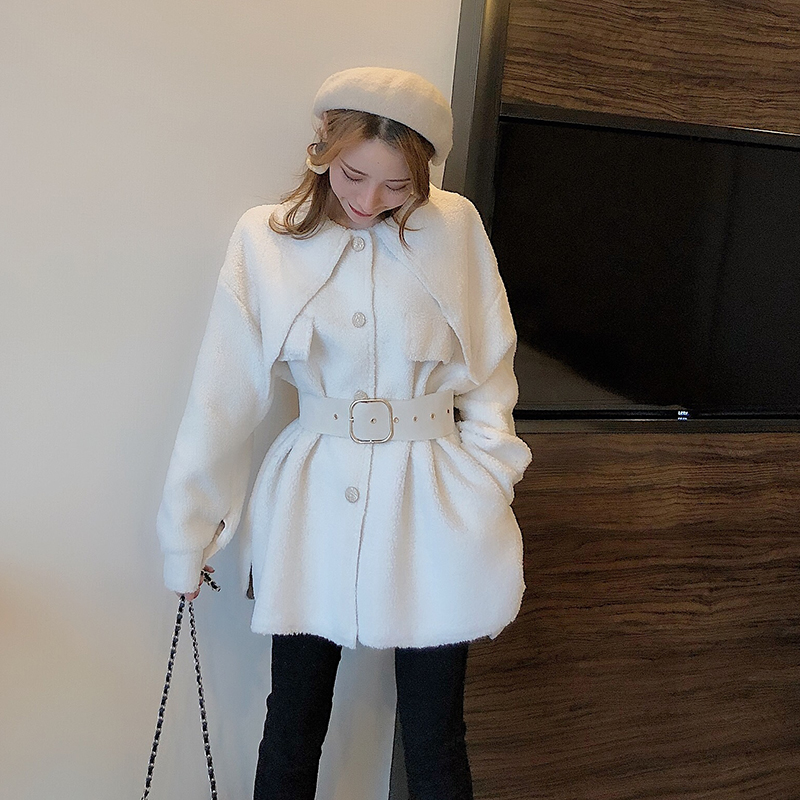 復古chic時尚大衣冬季新款韓版加厚保暖毛毛寬松單排扣外套送腰帶