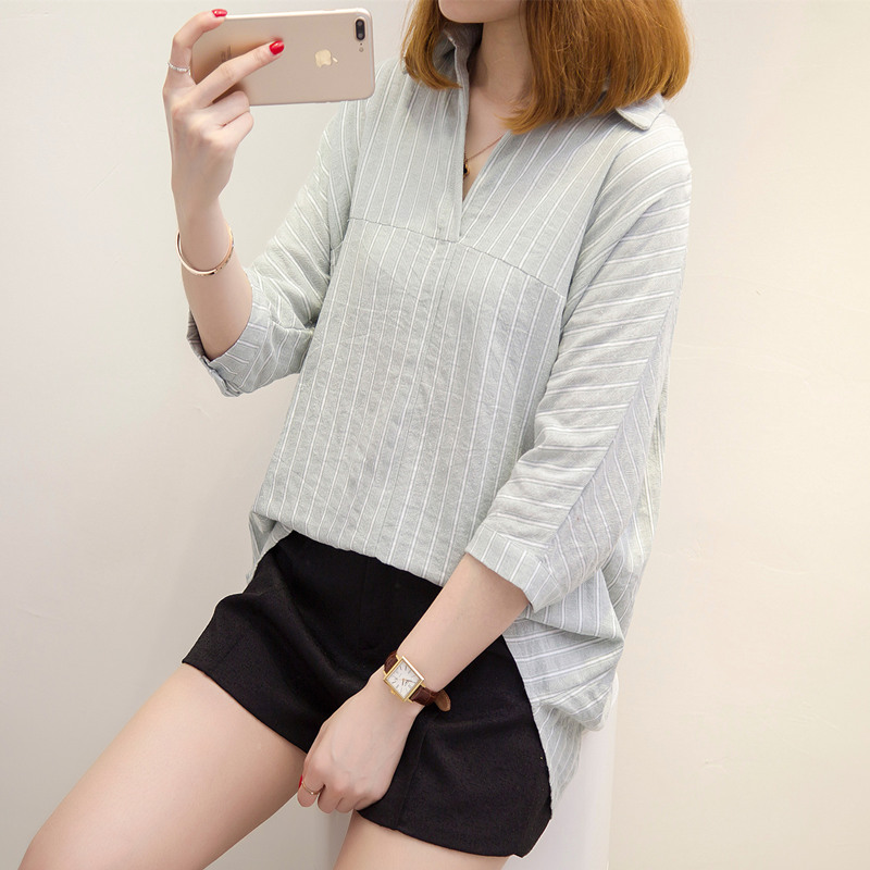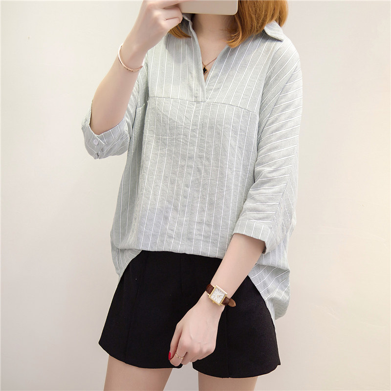 / 條紋襯衫女短袖韓范寬松bf風夏裝襯衣韓版百搭學生小清新上衣