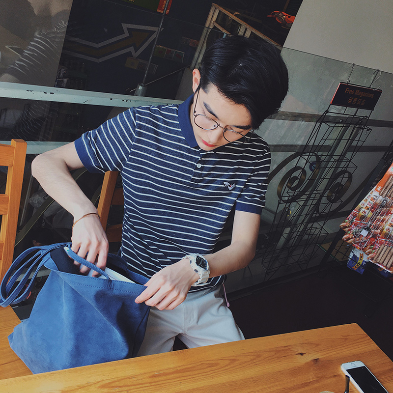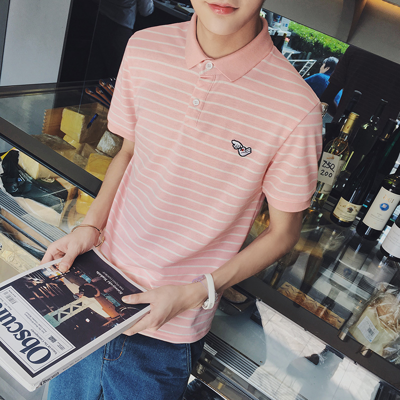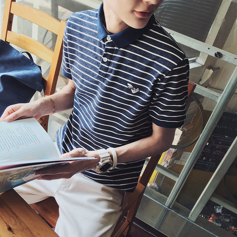 / 新款夏裝刺繡圖案韓版修身男士港風翻領短袖POLO衫
