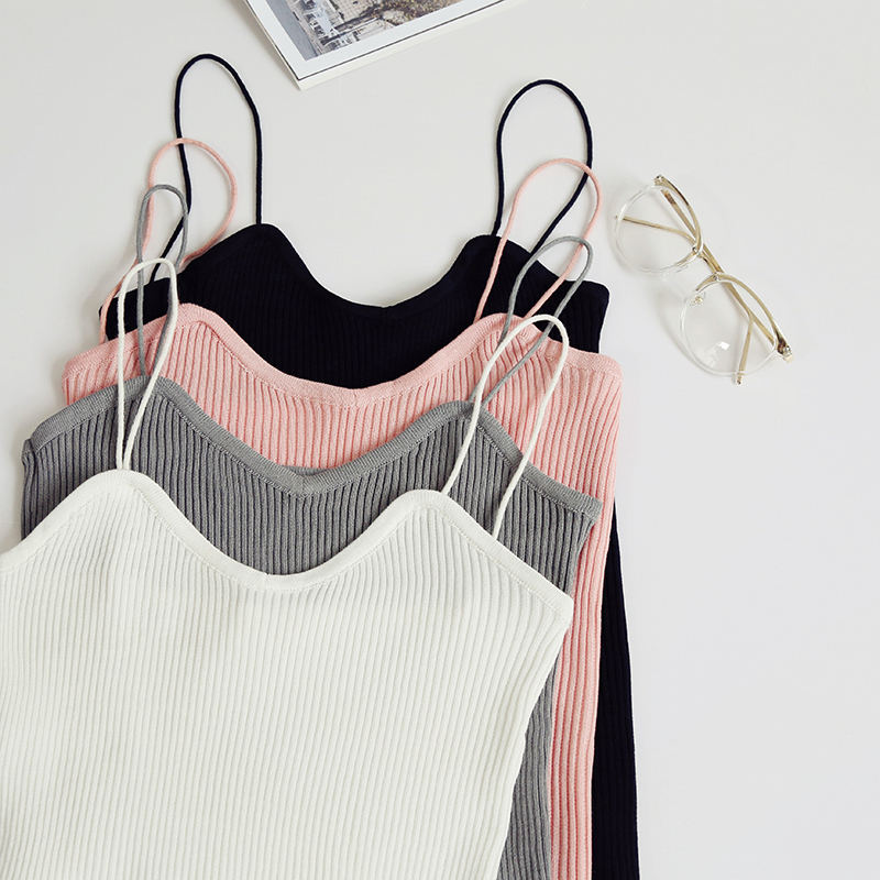 針織吊帶背心女寬松短款學生韓版夏季內穿打底衫修身顯瘦無袖t恤