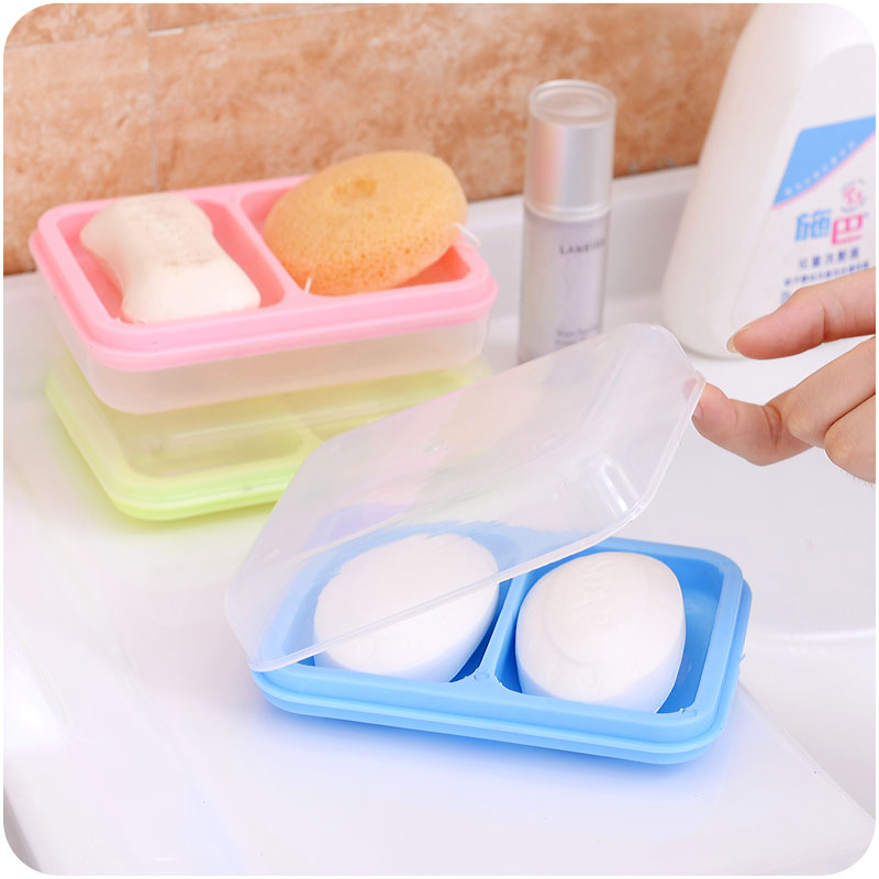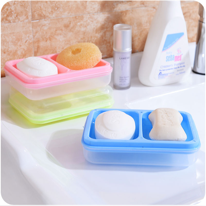 / 創意雙體大號皂盒雙格肥皂盒可瀝水帶蓋PP香皂盒時尚潔面手工皂盒