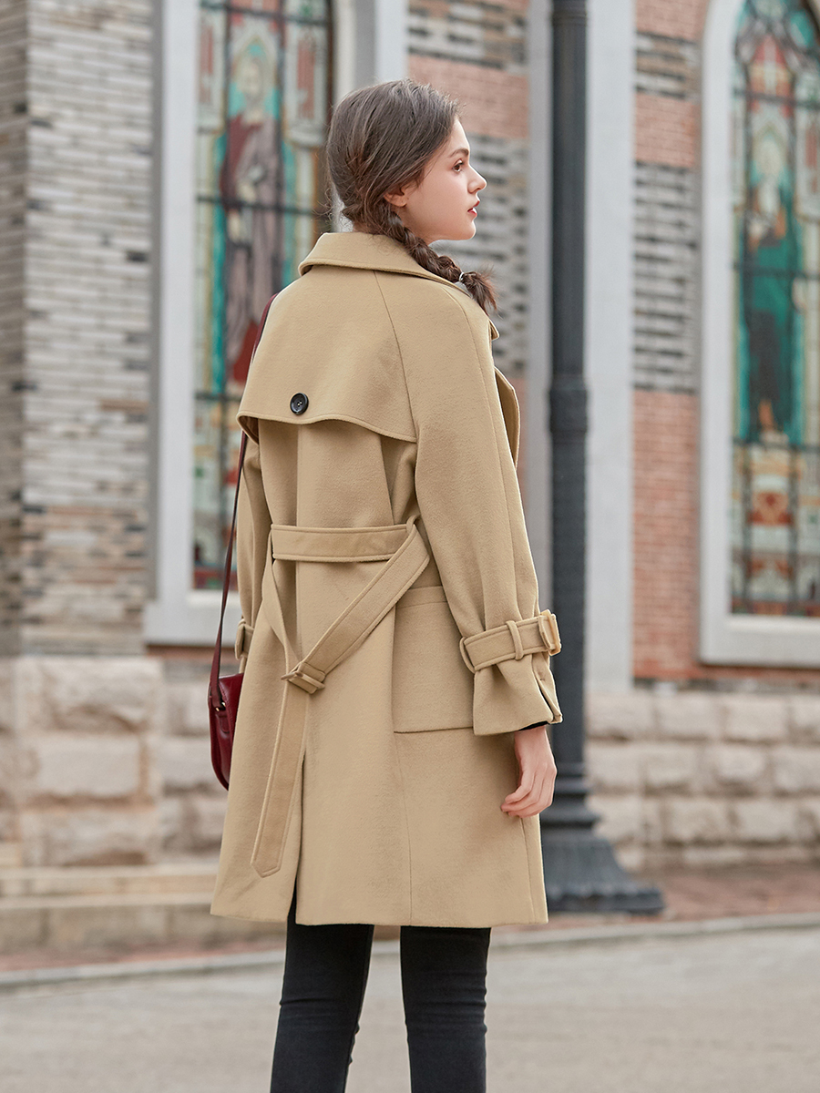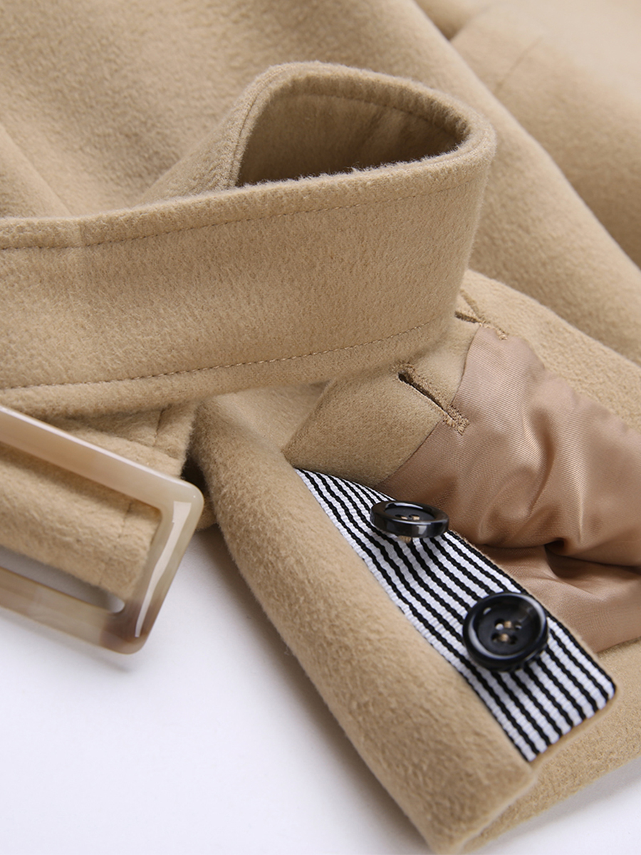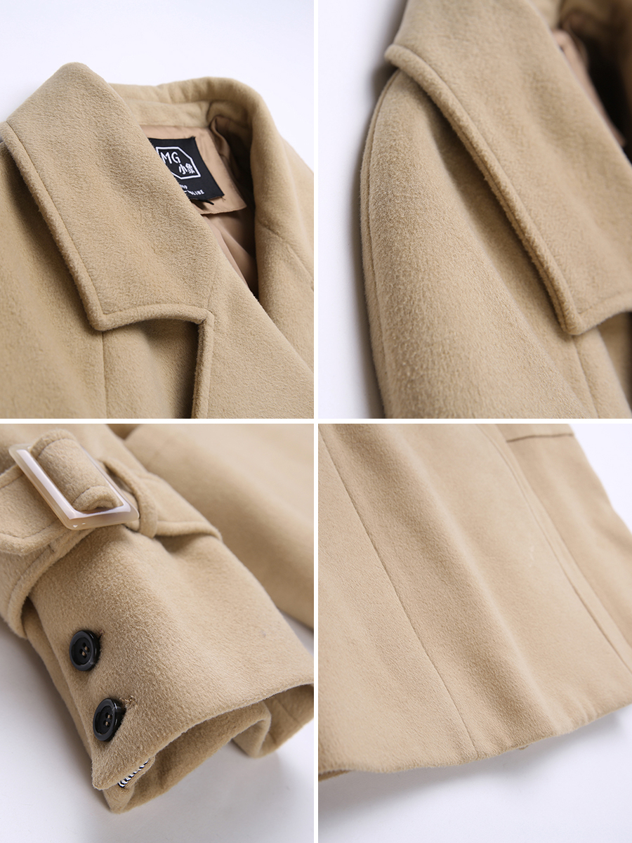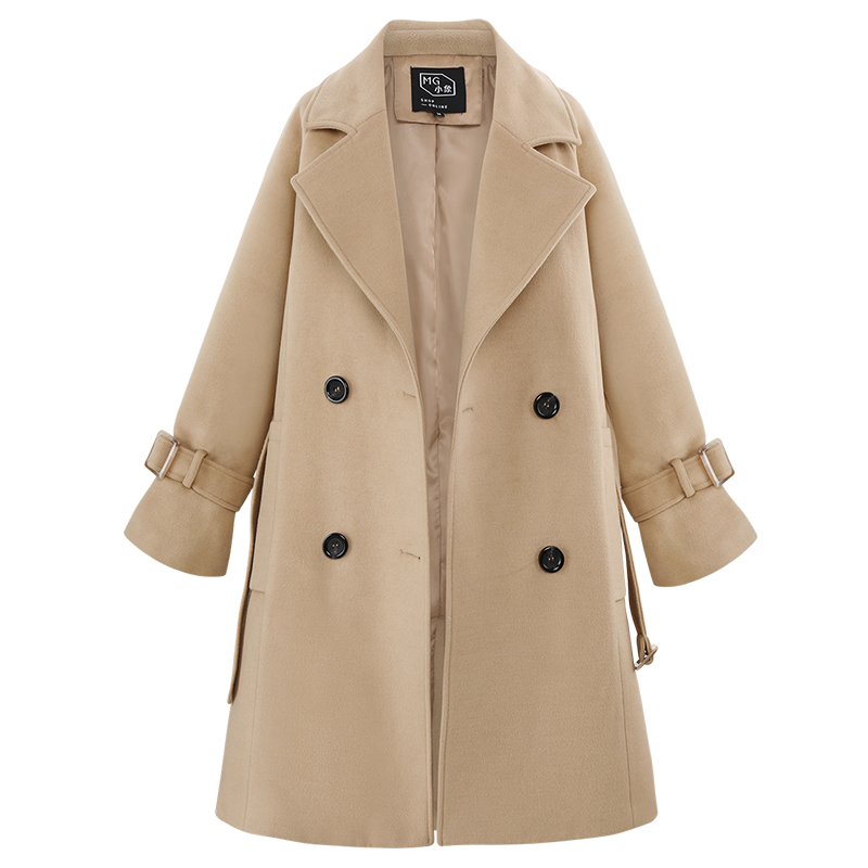 MG小象2018流行呢子大衣女中長款修身冬季新款杏色收腰毛呢外套潮