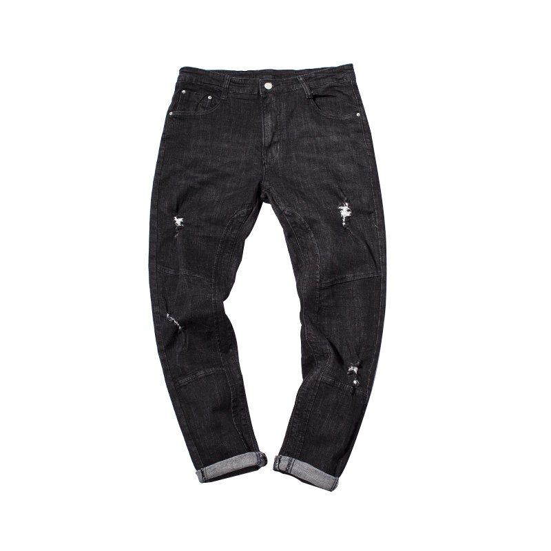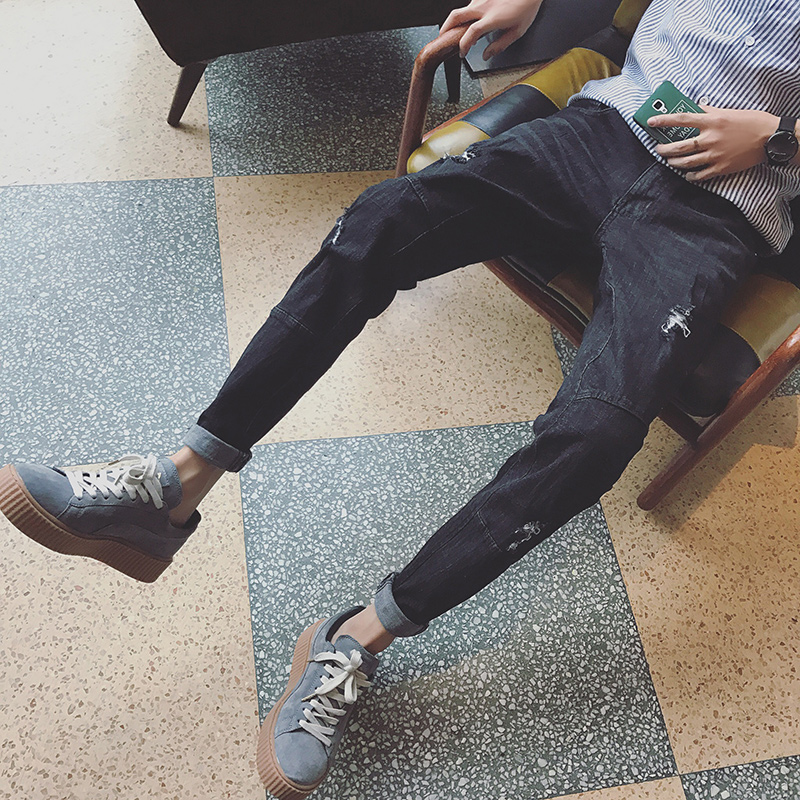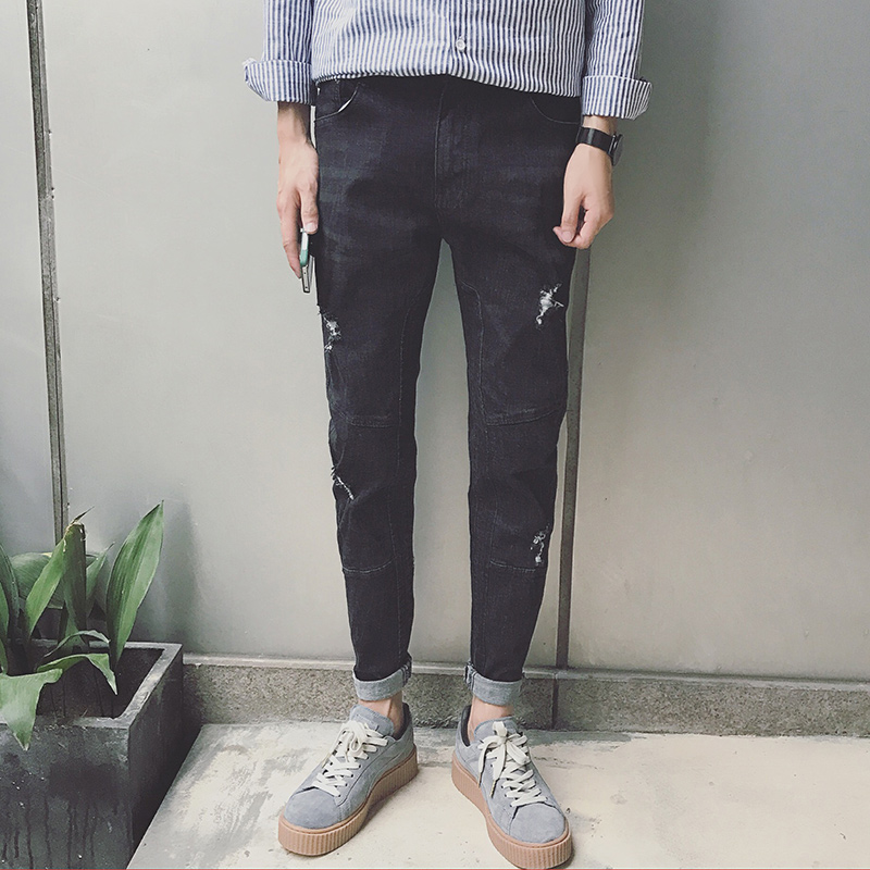 / 冬季新款韓版簡約磨破百搭修身小腳男士牛仔褲男褲