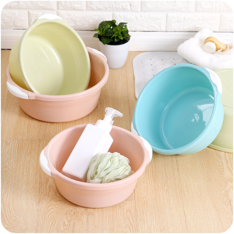 加厚洗臉洗衣家用盆子塑料嬰兒小臉盆成人洗腳洗衣服圓形純色盆子