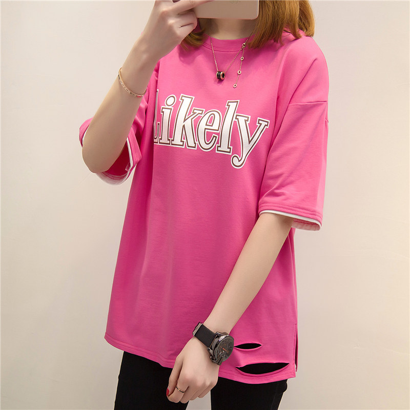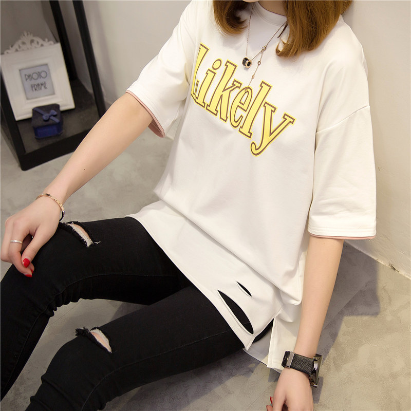 短袖t恤女夏寬松上衣韓版打底衫女體恤中長款春季時尚新款潮