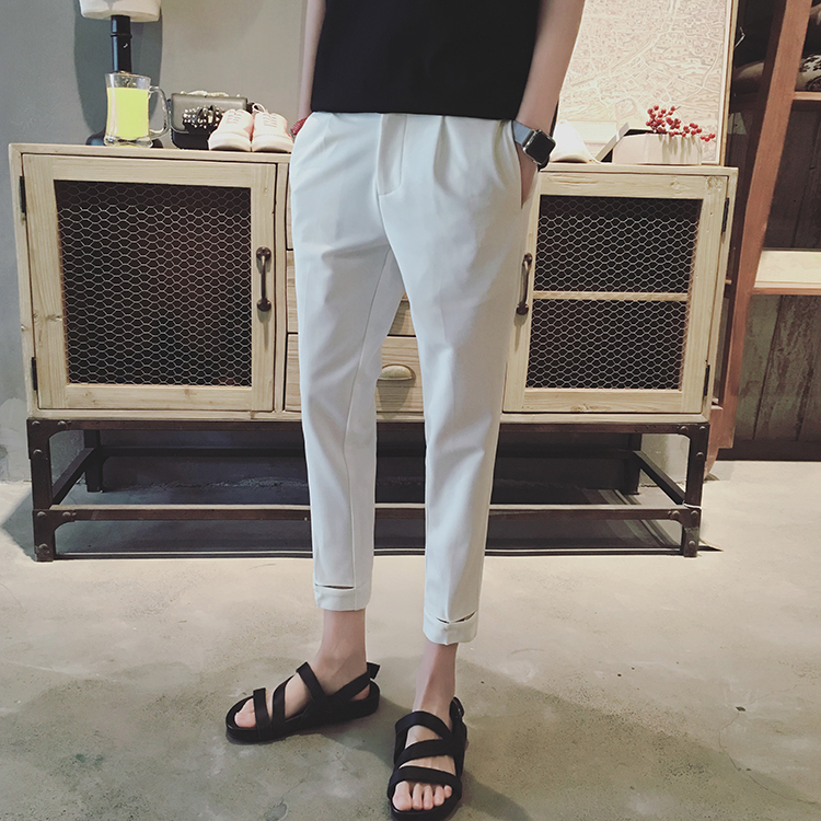 / 新款韓版修身小直腳百搭夏季九分褲男士休閑褲