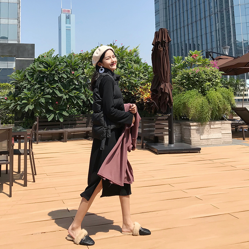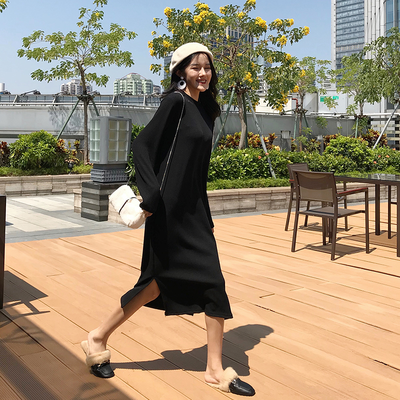 2018秋裝新款韓版省心搭配氣質時尚套裝長款側開叉連衣裙高領馬甲