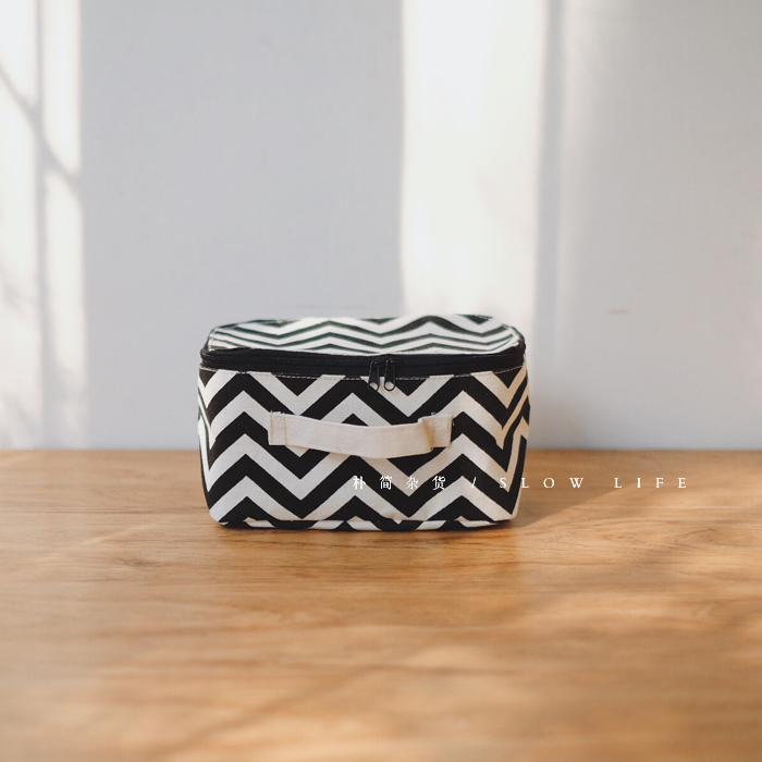 樸簡|外單黑白圖案棉麻桌面收納籃收納盒 布藝儲物籃家居收納筐