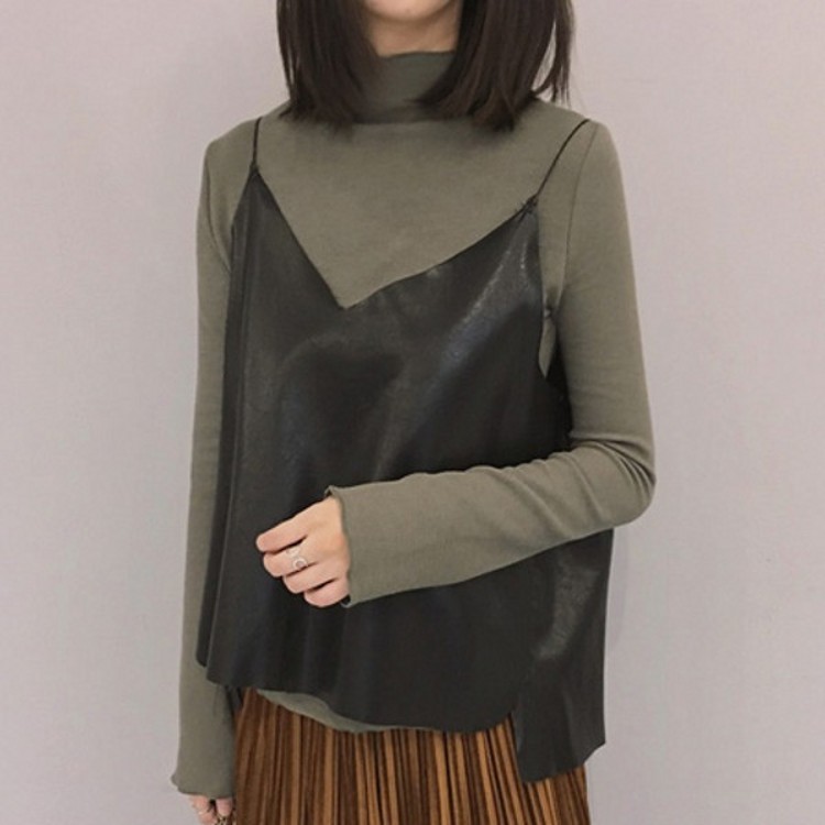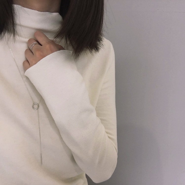 / 秋冬款韓國彈力質感螺紋顯瘦半高領長袖套頭打底衫修身T恤女