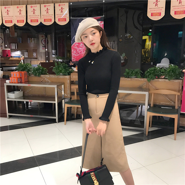 木耳邊袖口時尚感十足,領口木耳邊元素加上裝飾扣更別具一格