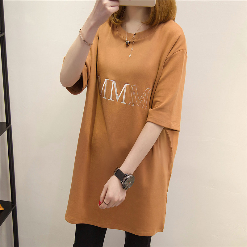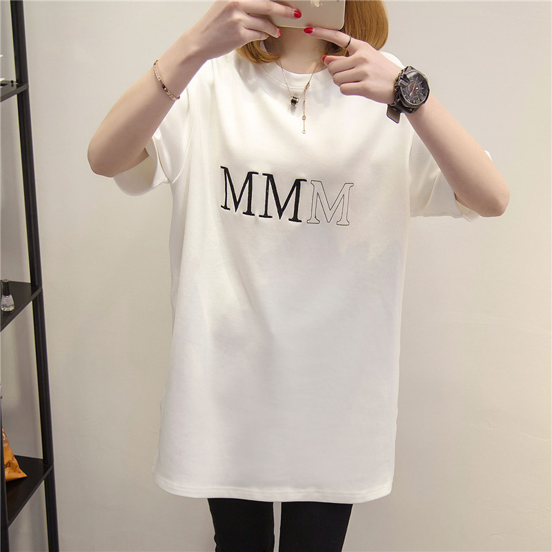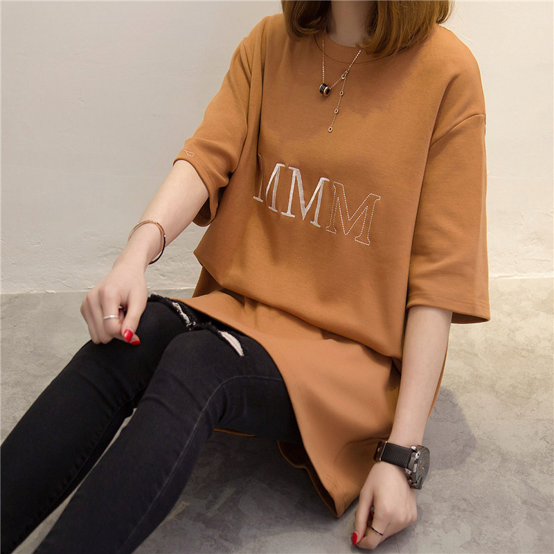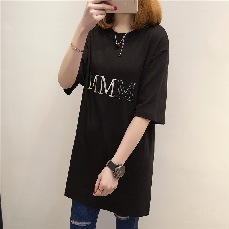 短袖t恤女上衣夏季衣服中長款字母寬松春夏裝新款百搭體恤衫