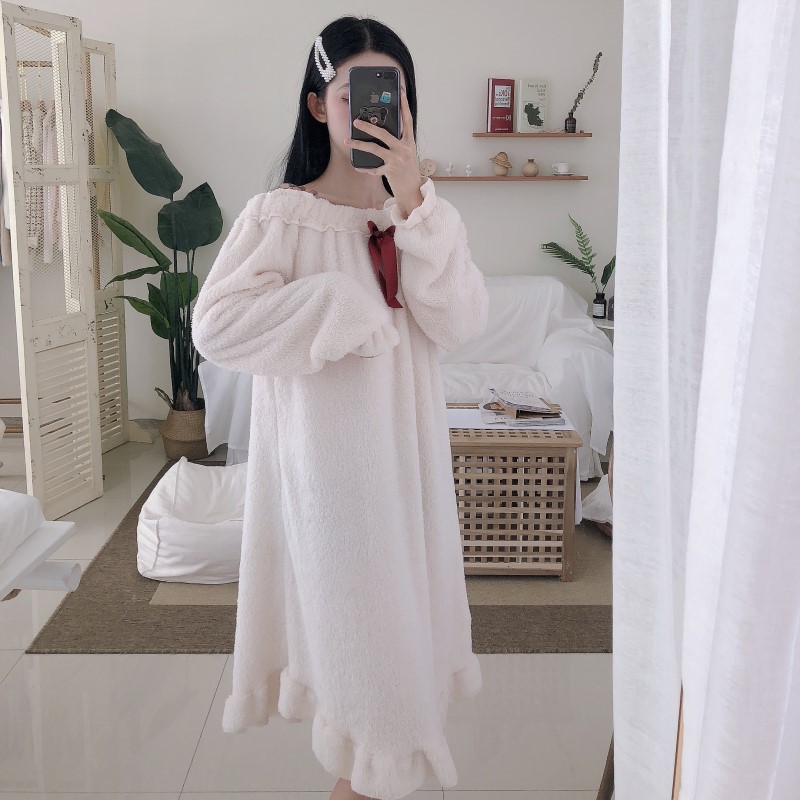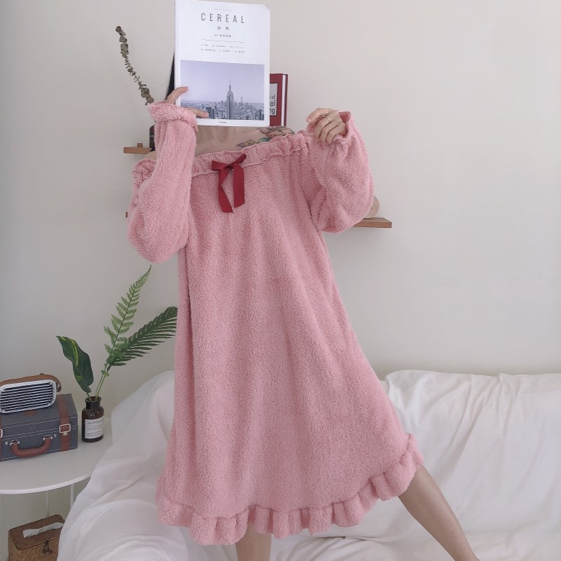 / 2018秋冬新款韓版甜美簡約時尚chic學生百搭蝴蝶結睡裙睡衣家居服