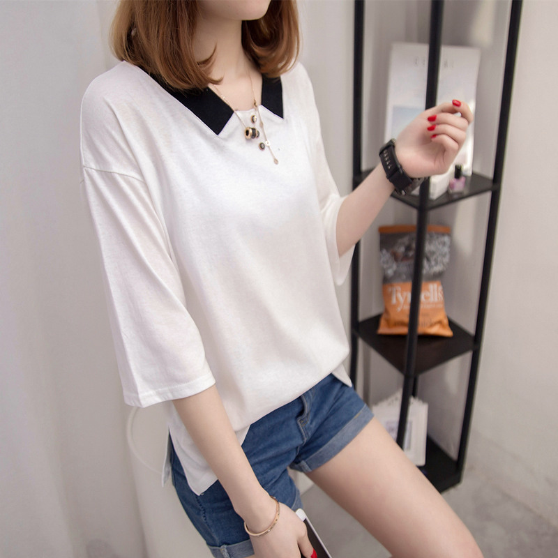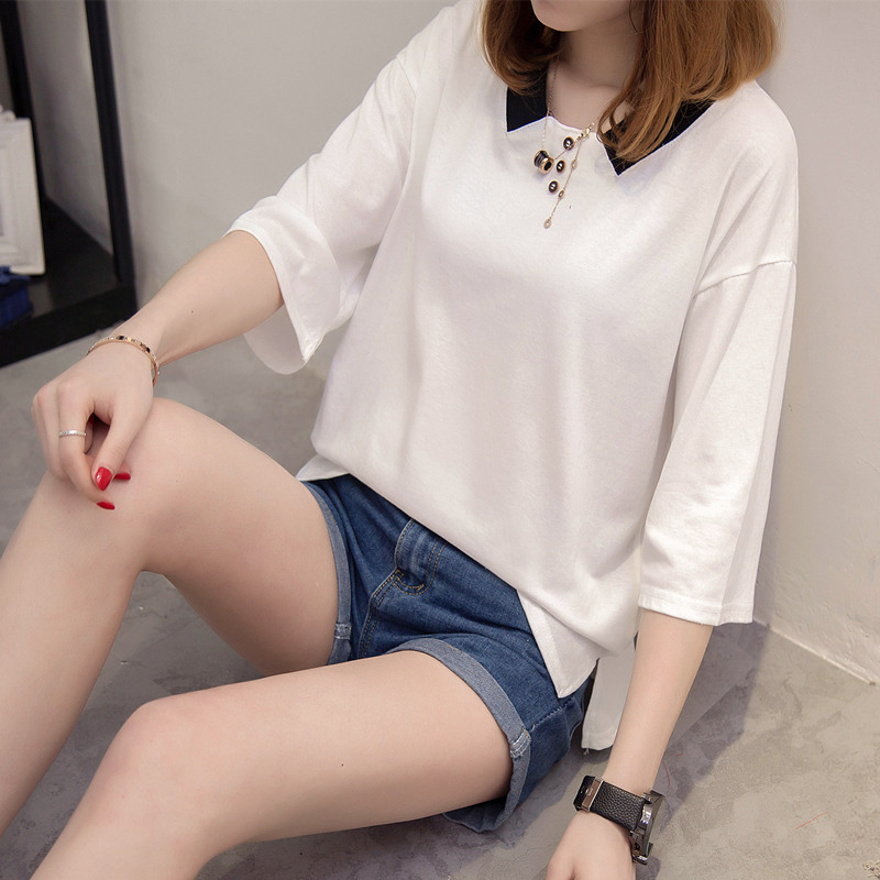 / 打底衫白色t恤女中長袖打底小衫寬松上衣體恤女裝夏裝新款潮