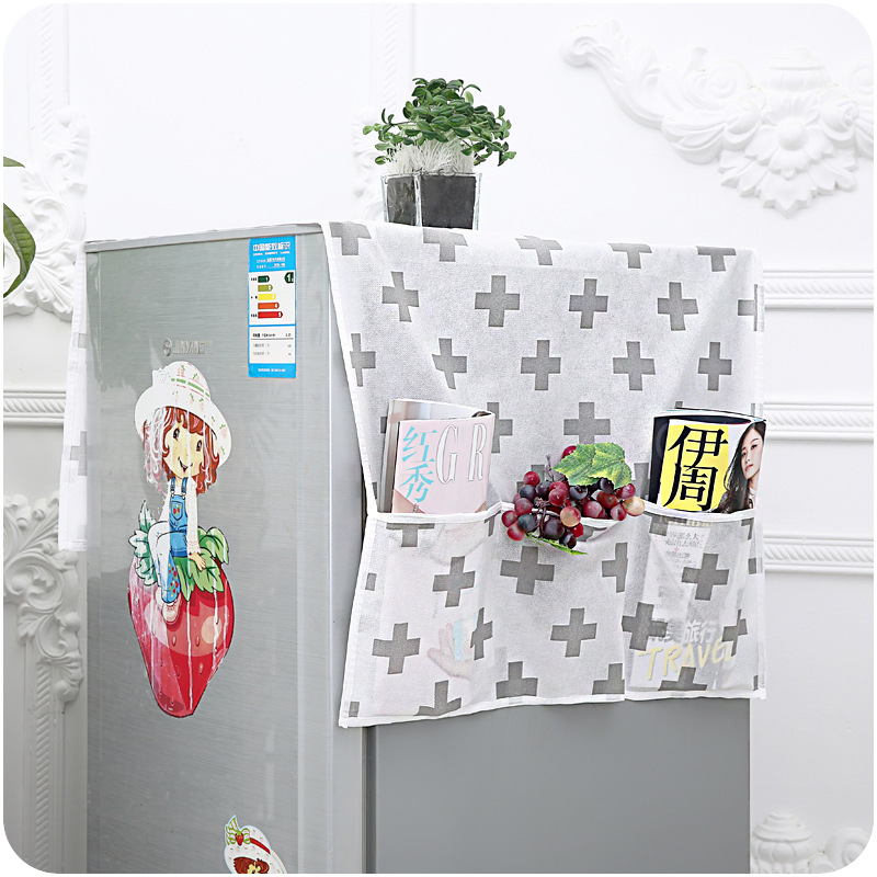/ 簡約創意無紡布布藝冰箱防塵儲物罩家用長款布藝冰箱口袋收納掛袋