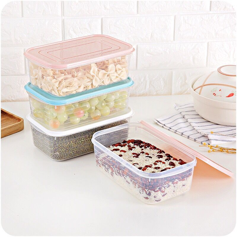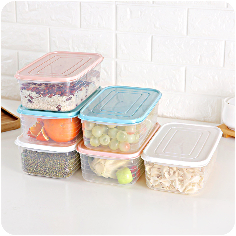 / 廚房家用帶刻度密封塑料保鮮盒長方形食品冷藏收納多功能儲物盒子