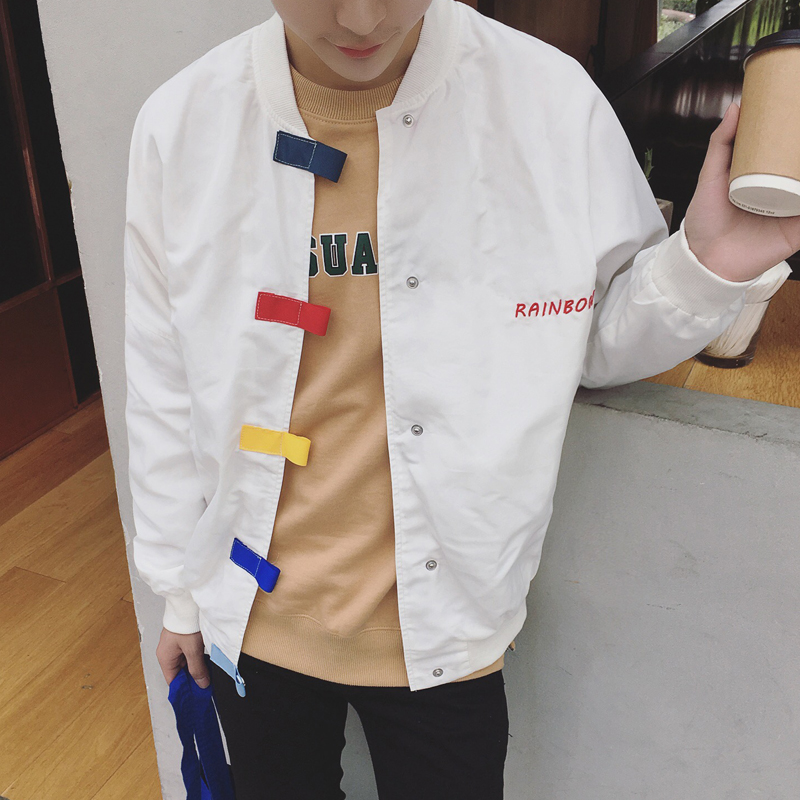 / 秋季新品港系撞色織帶立領落肩寬松男士夾克外套潮