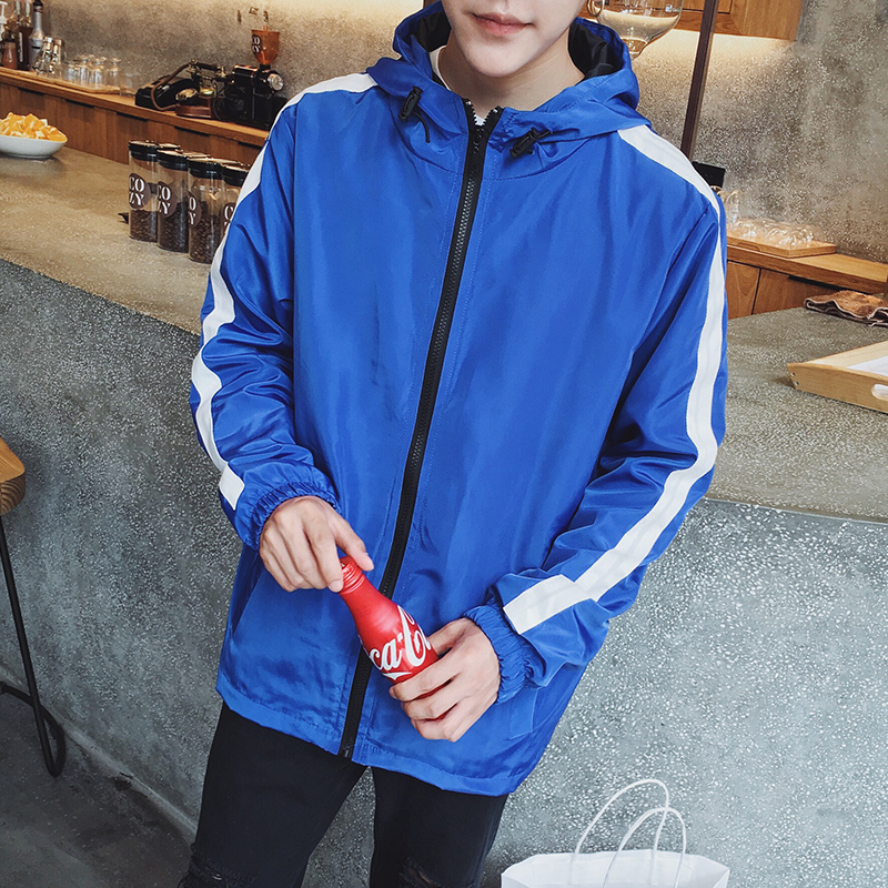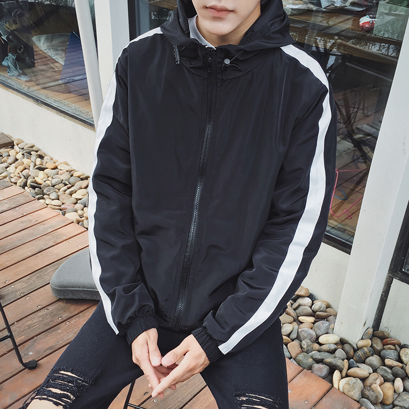 新品韓版春季新款撞色印花男士夾克連帽男外套