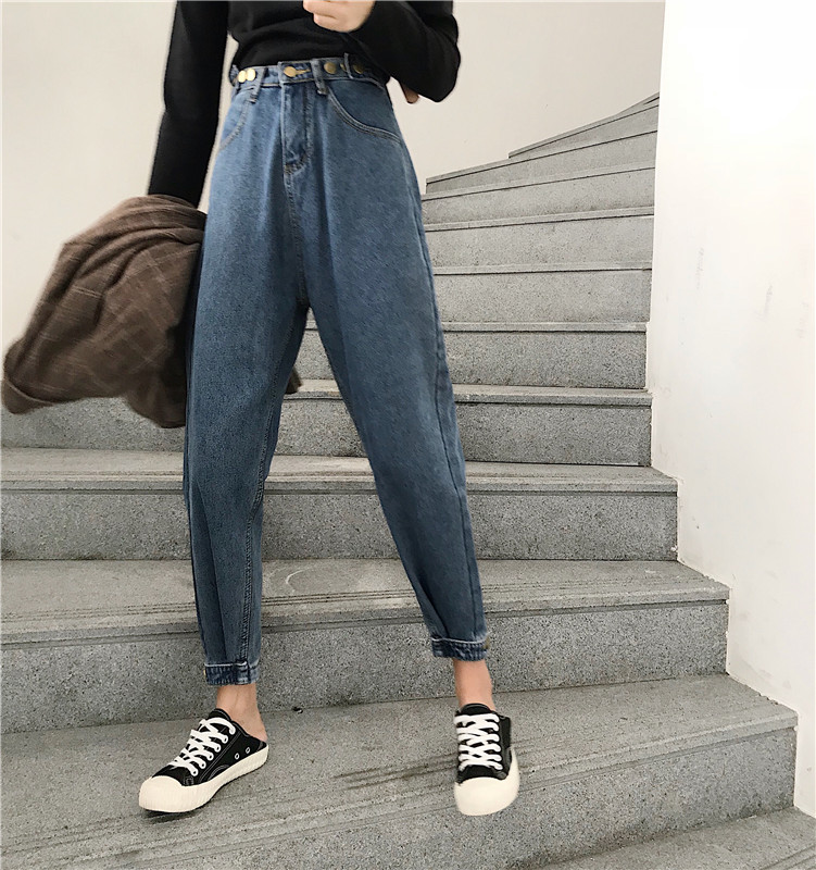 / 褲子2018新款冬季加絨加厚寬松直筒闊腿哈倫老爹蘿卜褲牛仔褲女潮